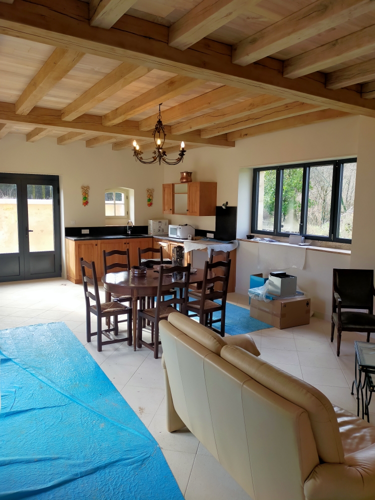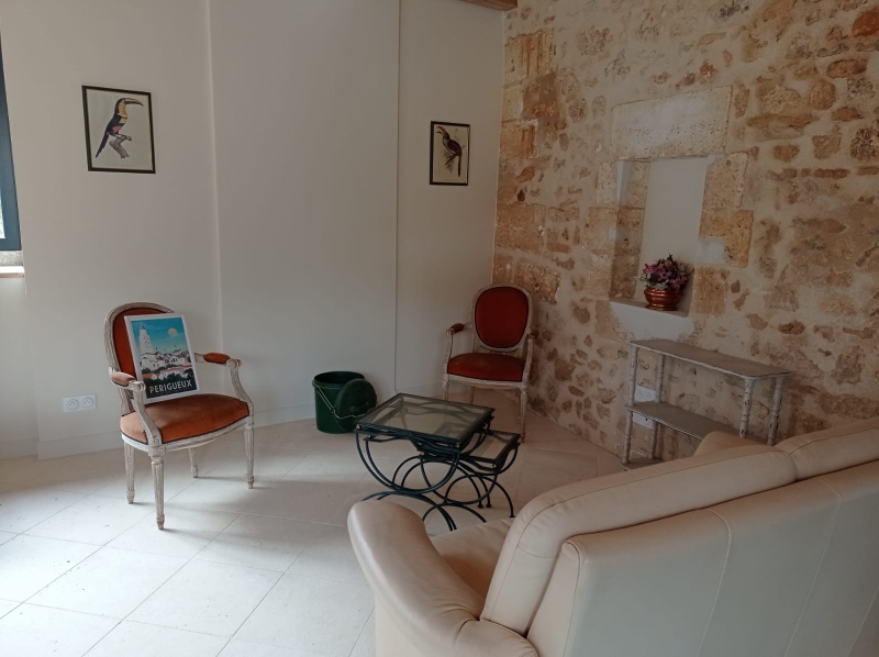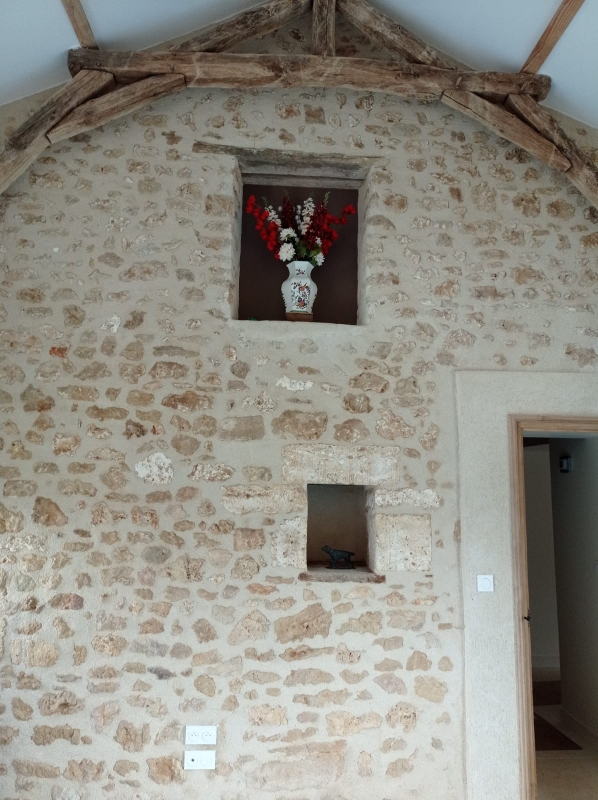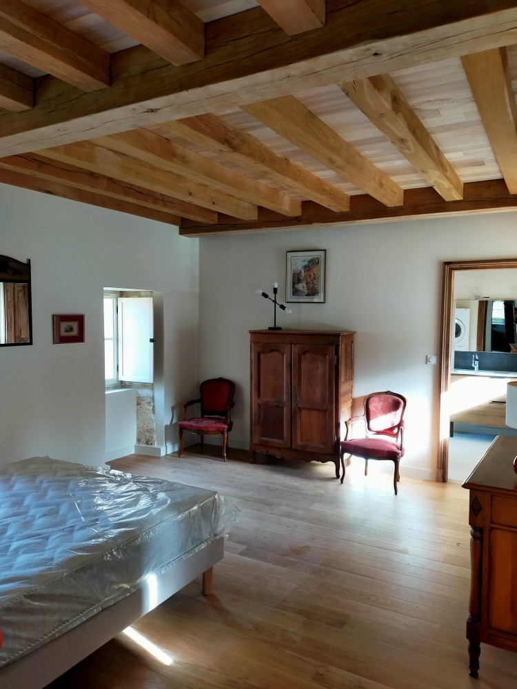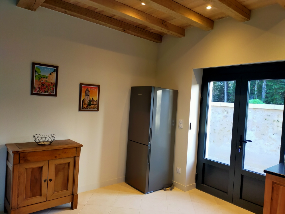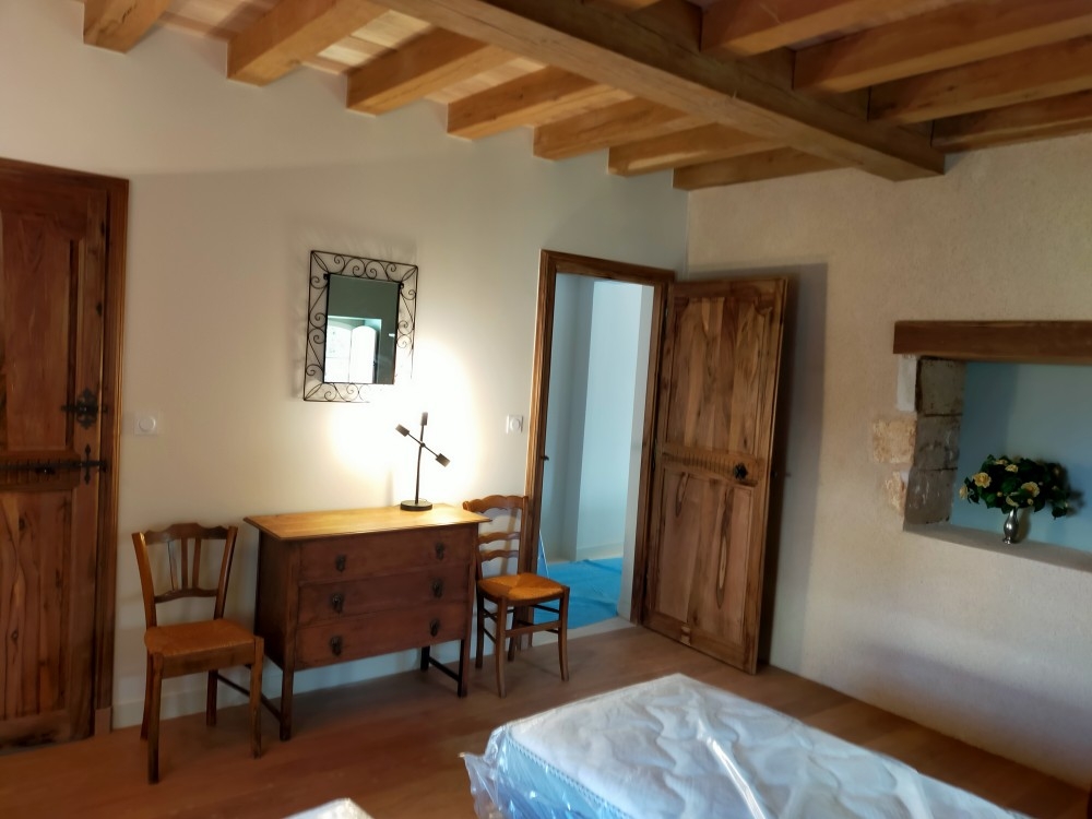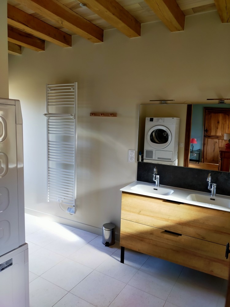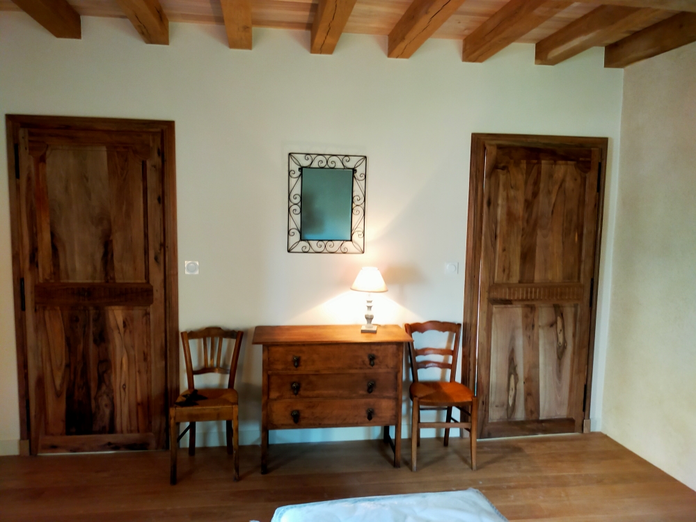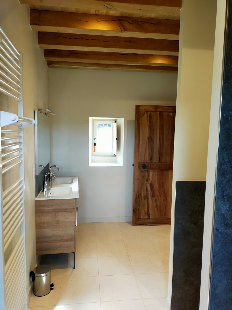 Ce gîte occupe la partie Ouest du commun ; il doit son nom à l’existence voisine d’un petit bois dénommé La Garenne. Le bâtiment, tout en conservant sa structure de base, a été complètement repris, du sol au toit et dans ses abords au Sud. Des artisans locaux, œuvrant avec goût, dans le respect des matériaux anciens, tout en alliant esthétique et confort ont été sélectionnés pour donner une nouvelle vie à cette construction. Dans le souci d’une économie durable et écologique, Ils ont réutilisé les matériaux des bâtiments préexistants partiellement remaniés, ainsi que des poutres et planches de chênes, châtaigniers, noyers et même de cerisiers issus de la propriété. Ainsi, le gîte La Garenne a été conçu pour vous accueillir de manière chaleureuse et spacieuse. Il se compose de deux belles chambres avec chacune sa salle de douche et un grand séjour de 38 M2 donnant sur une cour et une courette. Vous y trouverez un mobilier de jardin, un spa et un barbecue.